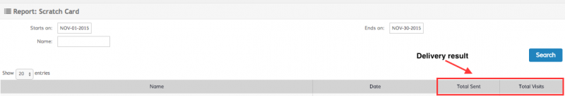 After blasting a Scratchcard campaign, you can get to this report in order to search for campaign name, date and confirm how many were sent.