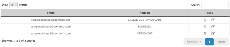 Reason What action prompted the blacklisting on the email address. It could the use of the {UNSUBSCRIBE} feature or the user calling the customer care helpdesk