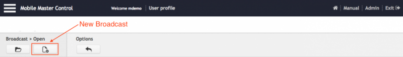To create a new Broadcast campaign you must click on the New Broadcast button on the toolbar: