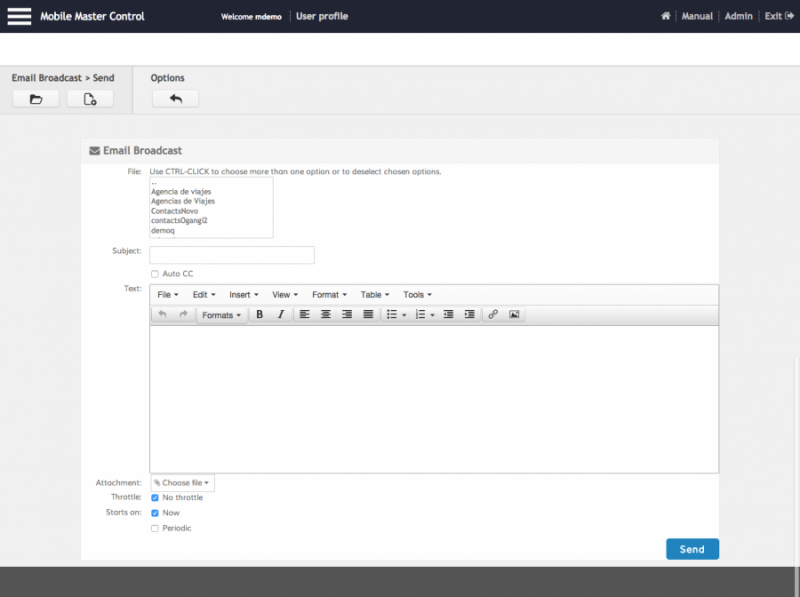 Once you validate all the fields click on Send and the broadcast will be delivered.