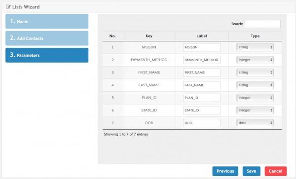 Filters can be applied to segmentation lists. Since segmentation lists require the type of data for each column to be known, lists are indexed and analyzed so fast search and filtering can be executed. Once a segmentation list has been created the Add Filter button can be used to create segments based on filters. Filters and segments created in the segmentation interface can then be used in other campaigns to send interactions only to the selected segment.