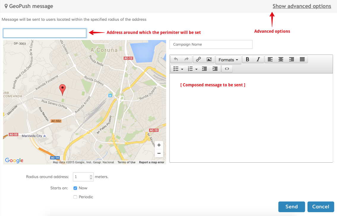 Click on the “Send” button to send the composed message to all mobile users present now at the selected location.