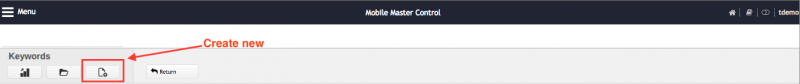 We want to set up a keyword campaign in the 13054957665 longcode that will receive the word demo or DEMO and will respond with the message Thanks for your message!. To do this we click on the Main Menu Button, click on Campaign and select the Keywords option. We will see the following screen: