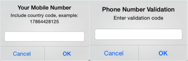 If you use the initMessangi:false procedure, the Messangi SDK will show the authentication dialog so the user can enter his mobile number and complete the SMS validation process. However, you can always create your own validation UI to better match your Application’s L&F: