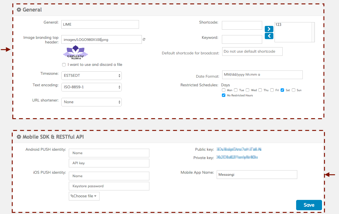 There are two section in the Personalized Workspaces page, the General section with global information about the workspace, the Mobile SDK & RESTful API section with the credentials to access our RESTful services and the Mobile SDK.