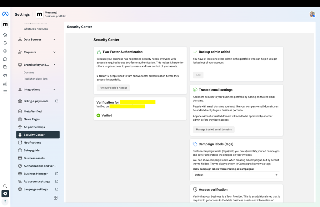 - In Meta Business Suite, navigate to “Security Center” in the left sidebar.