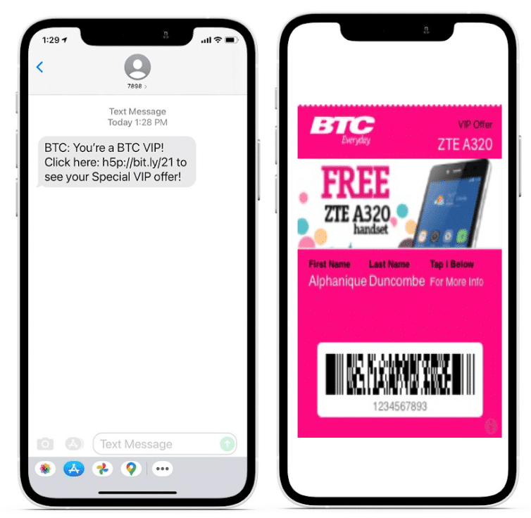 Messangi lanzó una campaña personalizada de SMS y billetera móvil para un grupo de clientes VIP donde recibirían un SMS con un cupón para un teléfono LTE gratuito. Esto nos permitió dirigirnos al público exacto, recibir un mensaje directamente en sus teléfonos y proporcionó una forma conveniente para que los suscriptores canjeen la promoción. Aprovechando la tecnología de billetera móvil, activamos campañas basadas en la ubicación de modo que cada vez que un cliente conducía o caminaba por la tienda, recibía una notificación automática en su teléfono que les recordaba que canjearan la oferta.