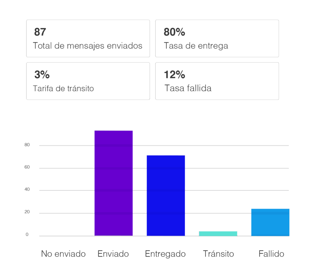 Obtén métricas detalladas, como recibos de entrega, confirmaciones de lectura y seguimiento de la interacción. Estos datos te ayudan a optimizar tus estrategias de mensajería para obtener mejores resultados.