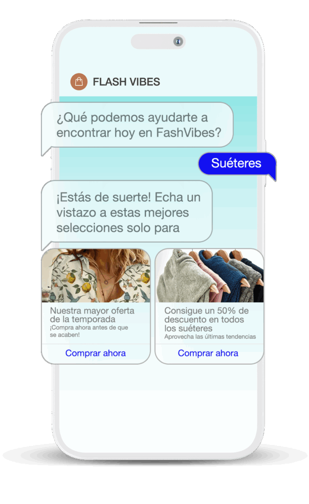 Los consumidores reciben miles de mensajes diarios, pero RCS ofrece lo que realmente desean: interacciones 1:1 personalizadas, ricas y contextuales. Ve más allá de la mensajería tradicional y ofrece conversaciones atractivas y significativas que conectan.